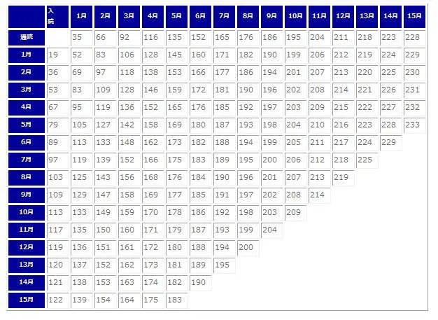 [ 裁判基準 入通院慰謝料 ] 別表Ⅰ(通常負傷の場合)(単位:万円)